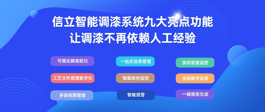 信立調(diào)漆管控系統(tǒng)XPMS,應(yīng)用工業(yè)物聯(lián)網(wǎng)技術(shù)、數(shù)據(jù)庫及智能化平臺(tái)軟件,標(biāo)準(zhǔn)、規(guī)范...