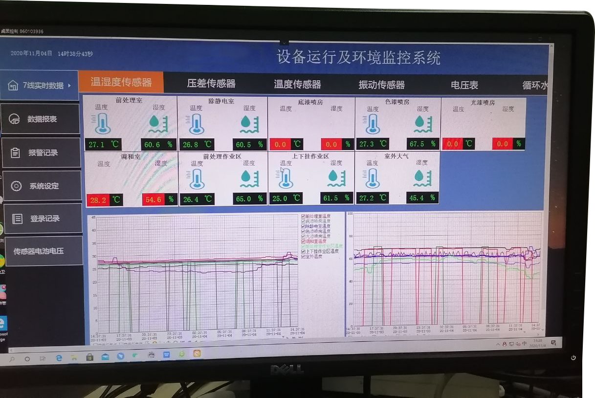 查看更多通過無線(Lora)傳輸,采集車間環(huán)境溫濕度和粉塵的數(shù)據(jù)并上傳到服務(wù)器電腦上,在服務(wù)器電腦上的平臺軟件上展示: