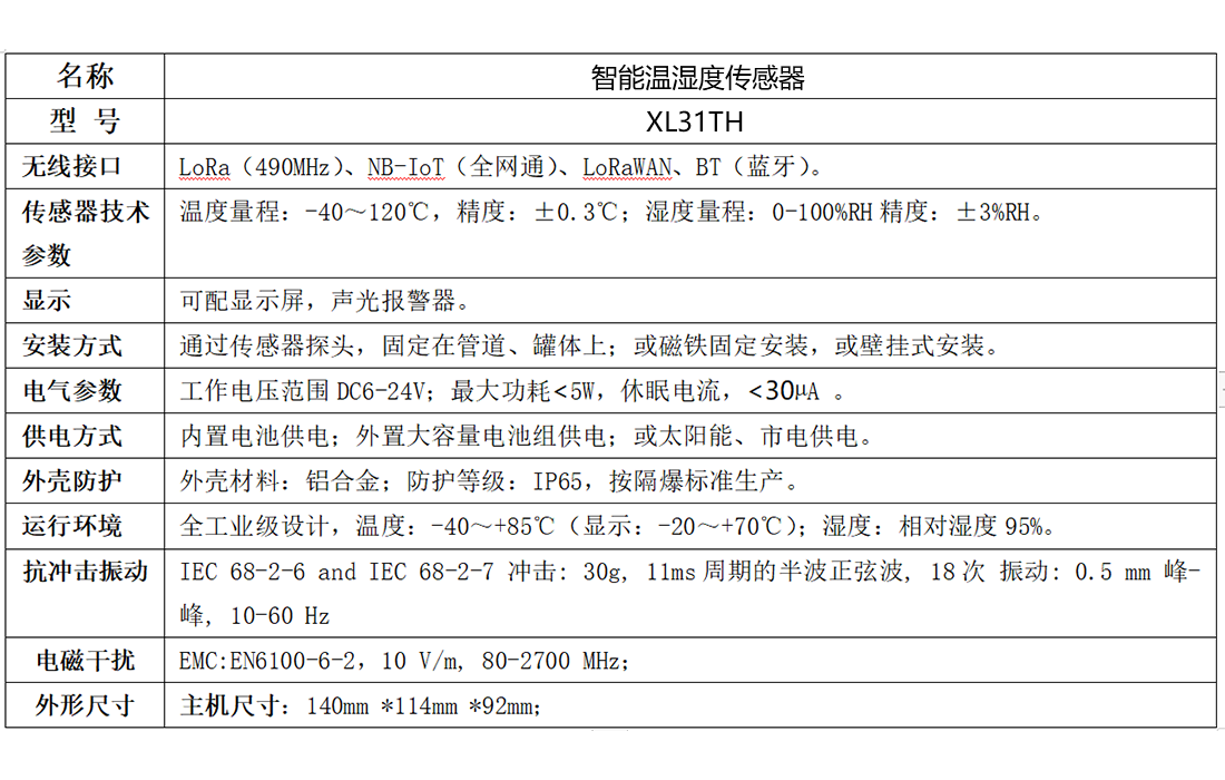 XL31TH智能溫濕度傳感器,集成傳感元件、信息處理、無線通訊、電池供電等于一體。通訊中斷保存數(shù)據(jù),通訊恢復重傳數(shù)據(jù),超限主動上傳數(shù)據(jù),電池能量低上傳報警數(shù)據(jù)。