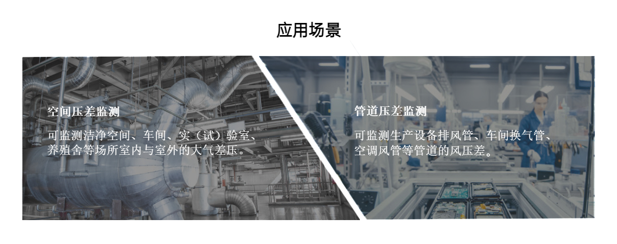 生產(chǎn)設(shè)備排風(fēng)管、車間換氣管、空調(diào)風(fēng)管等管道的風(fēng)壓差監(jiān)測。