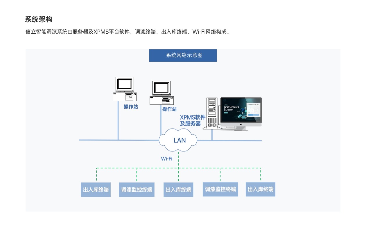 信立調漆管控系統(tǒng)XPMS,應用工業(yè)物聯(lián)網技術、數據庫及智能化平臺軟件,標準、規(guī)范、指導、監(jiān)管調漆過程,實現(xiàn)調漆操作智能化、簡單化,有效提升調漆質量、減少漆料浪費,降低人為因素風險,是一套智能化的調漆、制漆管控系統(tǒng)。
