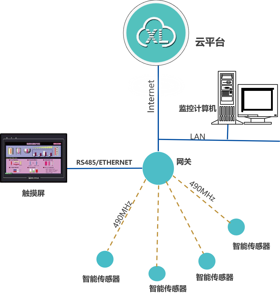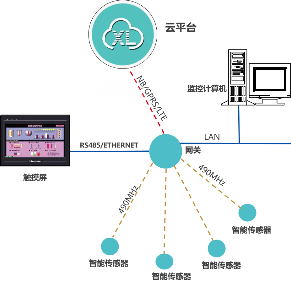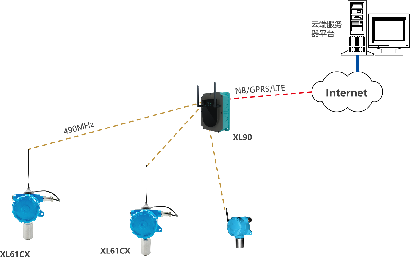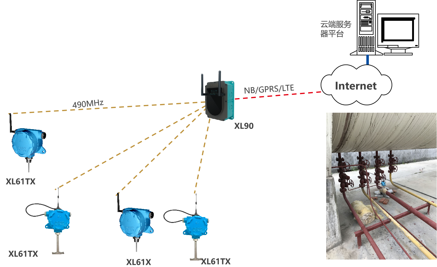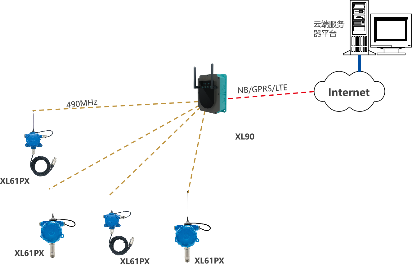 選擇XL90物聯網關,無線讀取監(jiān)測點的數據,進行協議、通訊轉換后,推送至上層軟件平臺