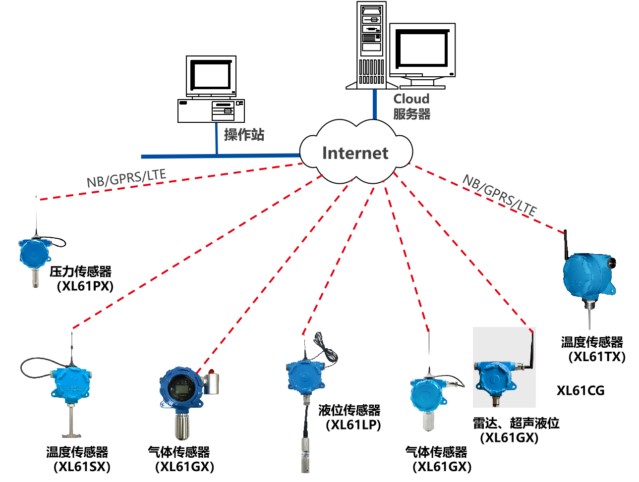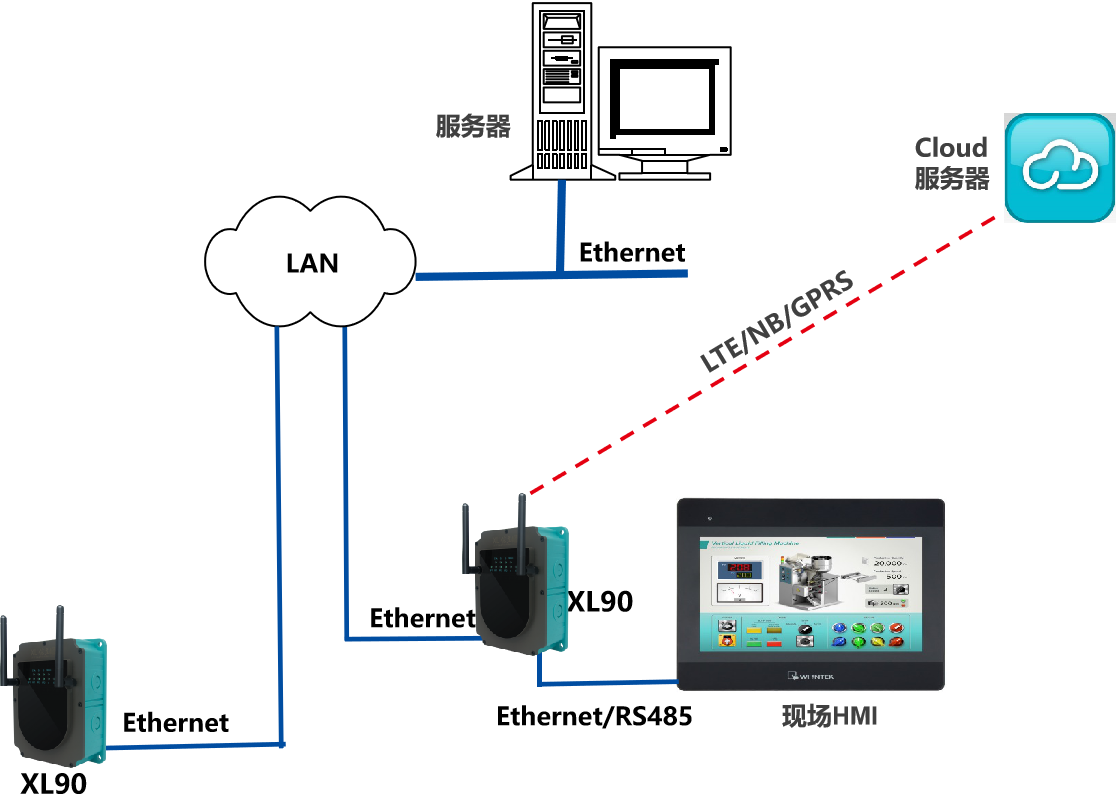 XL90,將數據上傳給企業(yè)內部的多個系統(tǒng)軟件平臺;通過LTE(4g)/NB/GPRS將數據上傳至云服務器