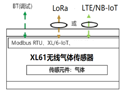 XL61無(wú)線氣體傳感器,可選LoRa、LTE/NB等通信方式,支持Modbus RTU、XL/6-IoT通信協(xié)議。