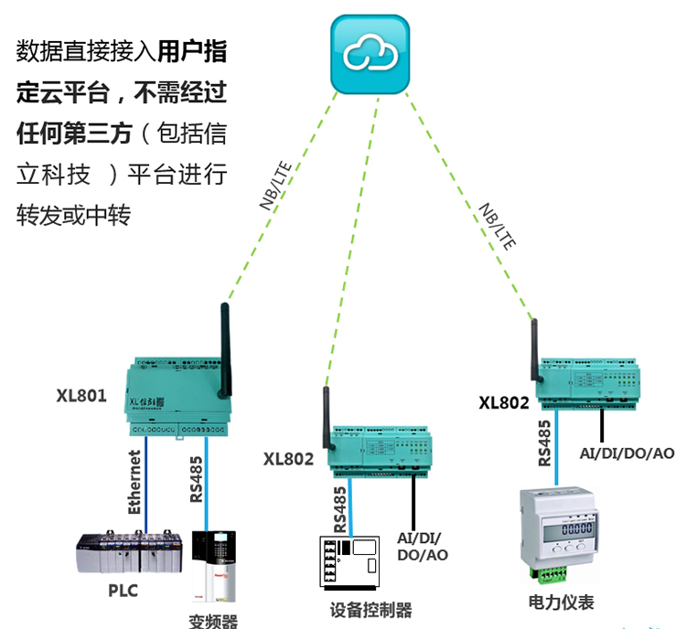 XL80X智能主機,配置RS485、Ethernet、USB、CAN、XBUS等通信接口,讀取數據,存儲、計算、分析、協(xié)議轉換等等處理后,無線上傳: