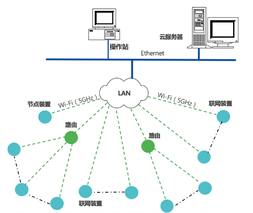 聯(lián)網(wǎng)裝置采集設(shè)備運(yùn)行,還可選擇Wi-Fi(5GHz)傳輸方式,接入云平臺(tái);