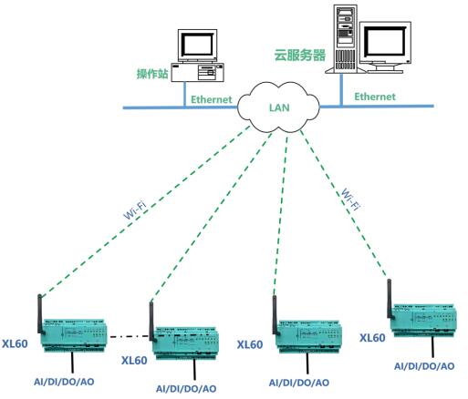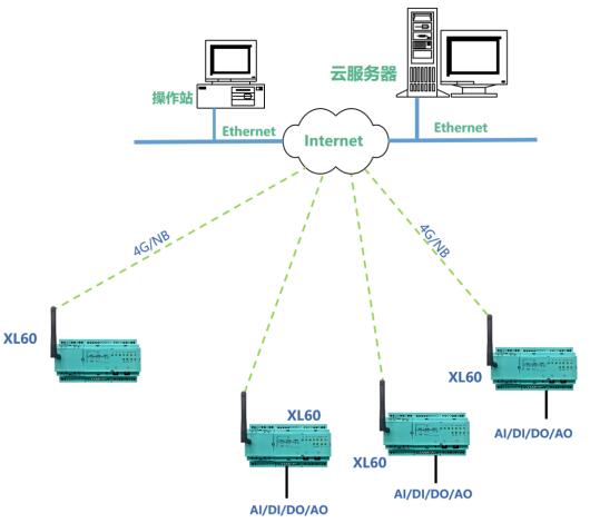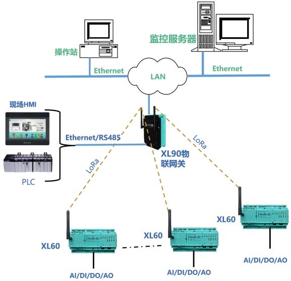XL90或XL95物聯(lián)網關作為無線接收端,進行協(xié)議轉換,數(shù)據轉發(fā)。