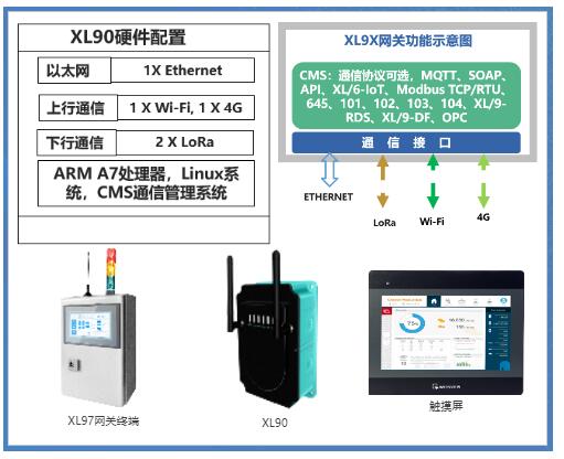 XL90物聯(lián)網(wǎng)關(guān):支持兩路LoRa通信,可以分別配置成對上或?qū)ο峦ㄐ?;網(wǎng)關(guān)支持Ethernet、4g、Wi-Fi通信,可同時(shí)向多個(gè)系統(tǒng)轉(zhuǎn)發(fā)數(shù)據(jù)。