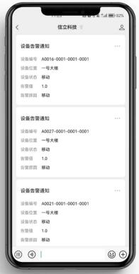 報(bào)警信息通過(guò)微信公眾號(hào)推送給管理人員,隨時(shí)隨地掌握現(xiàn)場(chǎng)設(shè)備動(dòng)態(tài),無(wú)需通訊費(fèi)用,更省成本。