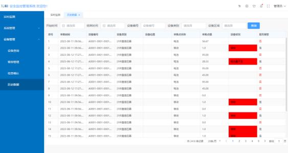 可篩選某個(gè)日期、設(shè)備編號(hào)、類(lèi)別、區(qū)域的歷史數(shù)據(jù),一鍵導(dǎo)出為表格,便于分析、管理。