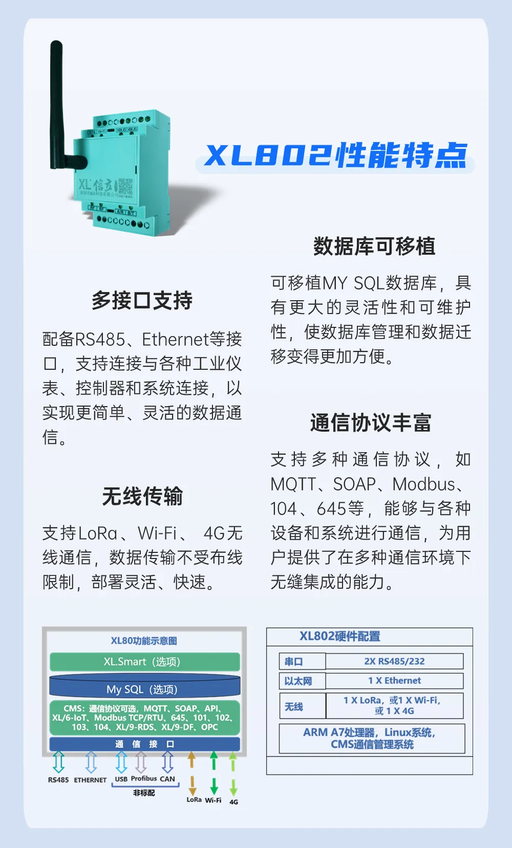 XL802通信主機(jī)對采集的數(shù)據(jù)進(jìn)行處理、協(xié)議轉(zhuǎn)換,通過Ethernet、Wi-Fi或4G通信方式,將數(shù)據(jù)傳輸至監(jiān)控平臺。