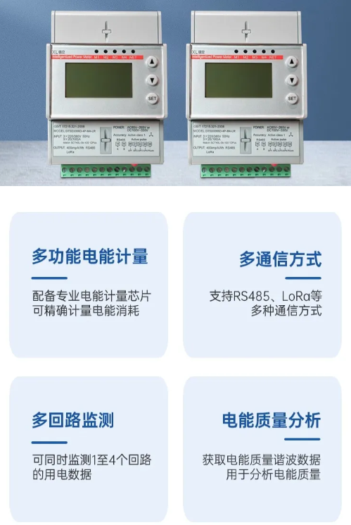 選擇DTSD3366XL無線多功能電表,監(jiān)測(cè)各節(jié)點(diǎn)用電能耗情況。