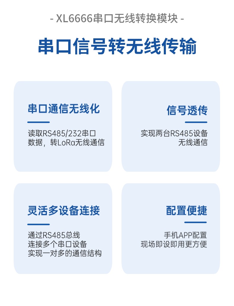 選擇XL6666串口無線轉(zhuǎn)換模塊,通過RS485通信口讀取流量計數(shù)據(jù),并通過 LoRa 無線傳輸至中控室。